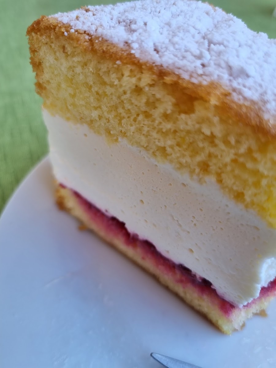 Die Behauptung der freundlichen Bedienung „Wir haben die beste Cremschnitte“ wurde von uns mit einiger Skepsis aufgenommen aber alsbald durch die mit sehr gutem Café kredenzte absolut bestätigt. Fünf Sterne für Service, Café und Cremschnitte!